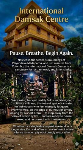 Die Unterkunft International Damsak Center, die in Piliyandala, 20 km von Bahnhof Bambalapitiya entfernt gelegen ist, verfügt über Übernachtungsmöglichkeiten mit einem Garten, einem kostenlosen Privatparkplatz, einer Terrasse und einem Restaurant. Dieses Hotel mit 3 Sternen besticht durch klimatisierte Zimmer mit einem eigenen Badezimmer und kostenloses WLAN. Die Unterkunft bietet einen Zimmerservice und eine rund um die Uhr besetzte Rezeption für Gäste.