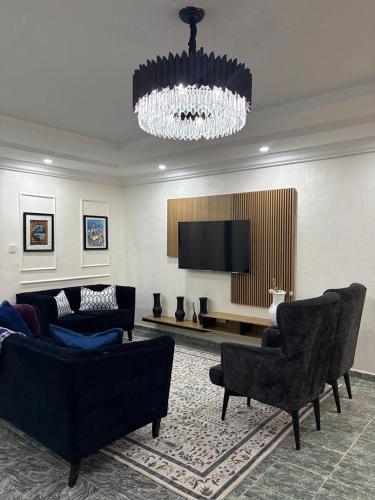 Furnished shortlet in Gwarimpa, FCT offers accommodations in Gwarinpa, 8.5 miles from Magic Land Abuja and 11 miles from IBB Golf Club. This property offers access to a terrace and free private parking.