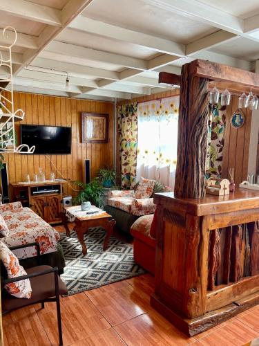 Offering a garden, Cabaña Mediterranea ideal pareja con lindas vistas provides accommodations in Quintero. The property is around a 7-minute walk from El Libro Beach, 25 miles from Vina del Mar Bus Terminal, and 17 miles from Las Sirenas Square. There's a picnic area and guests can use free Wifi and free private parking.