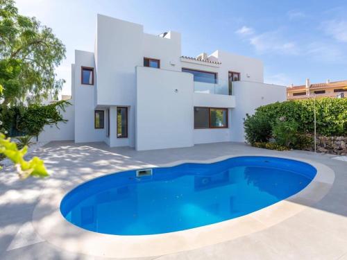 Guests can enjoy the outdoor swimming pool at the villa.