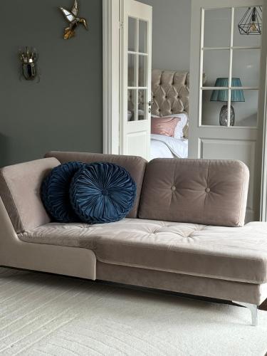 The holiday home consists of 2 bedrooms, a living room, a fully equipped kitchen with an oven and a kettle, and 2 bathrooms with a walk-in shower. The holiday home offers bed linen, towels and laundry service.