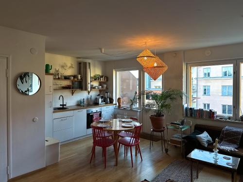 Tyylikäs kaksio trendikkäässä Punavuoressa is located in the Punavuori district of Helsinki, 1.6 km from Helsinki Music Centre, 1.1 km from Helsinki Bus Station and 1.3 km from Kamppi Shopping Centre. The property is set 3.5 km from Helsinki Olympic Stadium, 3.6 km from Bolt Arena and 5.9 km from Helsinki Halli. The property is non-smoking and is situated 1.7 km from Uunisaaren Beach.
