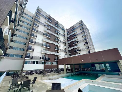 Set in Caldas Novas, 1.4 km from Acqua Park Di Roma and 26 km from Hot Park, diRoma Spazzio com acesso ao Acqua Park - TemporadaCN Adriele offers a fitness centre and air conditioning. This property offers access to a balcony, free private parking and free WiFi. The aparthotel features an outdoor swimming pool with a pool bar, as well as a sauna and a 24-hour front desk.
