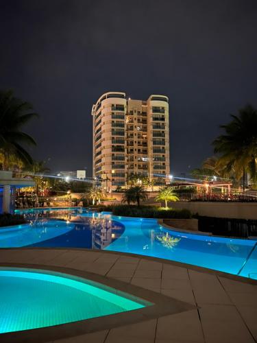 Boasting air-conditioned accommodation with a rooftop pool, lake view and a balcony, Ap Union Suites Rooftop Barra Tijuca 5min Farmase is set in Rio de Janeiro. Conveniently located in the Jacarepagua district, this apartment offers a private beach area, as well as a sauna and a hot tub. There is a picnic area and guests can make use of free WiFi, free private parking and an electric vehicle charging station.