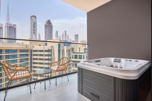 Located in the Business Bay district of Dubai, Studio Vista With Jacuzzi And Burj Khalifa Views! offers accommodation with a private pool and a lift. This apartment features accommodation with a terrace. The apartment also provides free WiFi, free private parking and facilities for disabled guests.