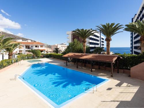 The apartment features 1 bedroom, 1 bathroom, bed linen, towels, a flat-screen TV with satellite channels, a dining area, a fully equipped kitchen, and a patio with mountain views. Guests can enjoy a meal on an outdoor dining area while overlooking the pool views. The property offers city views.