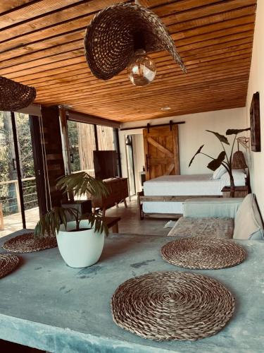 Boasting river views, Bungalow con acceso privado al rio, tinaja y camas de cuarzo features accommodation with a garden and a patio, around 43 km from La Granja Stadium. This property offers access to a terrace and free private parking. Guests have access to a hot tub and public bath.