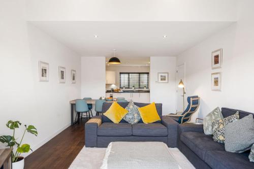 The holiday home with a terrace and garden views has 2 bedrooms, a living room, a flat-screen TV, an equipped kitchen with a dishwasher and an oven, and 2 bathrooms with a bath. Offering free private parking, this 5-star holiday home also features free WiFi. There is also a seating area and a fireplace.
