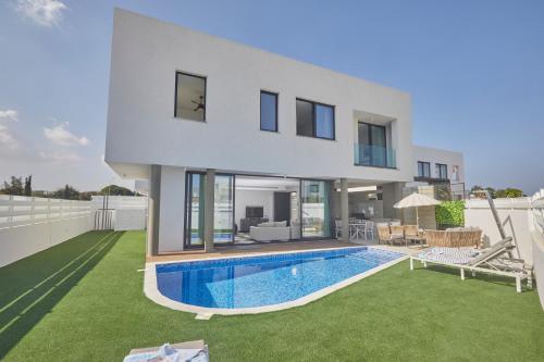 Situated within the Pernera district in Protaras, Luxury Villa - Private Pool and Wifi Perfect location for a holiday has air conditioning, a patio, and garden views. Both free WiFi and parking on-site are accessible at the villa free of charge. The accommodation features airport transfers, while a car rental service is also available.