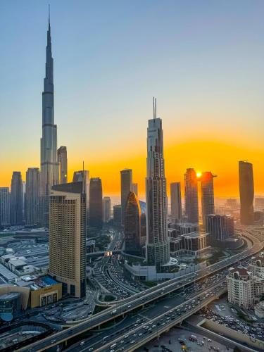 Burj Khalifa is 1.6 km from Stunning 2BR Skyline Stay With Full Burj Khalifa View, while The Dubai Fountain is 3.7 km from the property. Dubai International Airport is 12 km away.