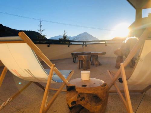 The apartment with a terrace and mountain views has 1 bedroom, a living room, a flat-screen TV, an equipped kitchen with a dishwasher and an oven, and 1 bathroom with a hot tub. Towels and bed linen are offered in the apartment. The property has an outdoor dining area.