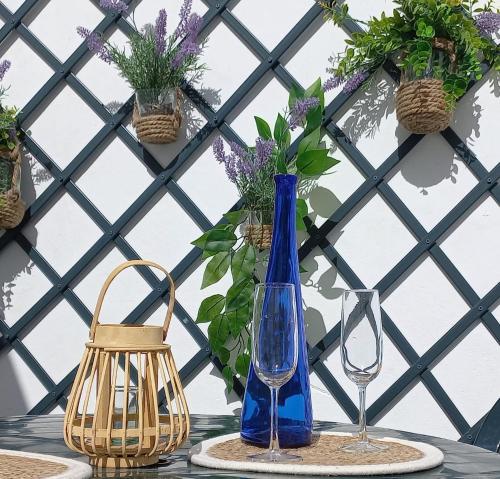 The holiday home with a terrace and garden views has 2 bedrooms, a living room, a flat-screen TV, an equipped kitchen with a microwave and a toaster, and 2 bathrooms with a shower. A private entrance leads guests into the holiday home, where they can enjoy some wine or champagne and chocolates or cookies. The property has an outdoor dining area.