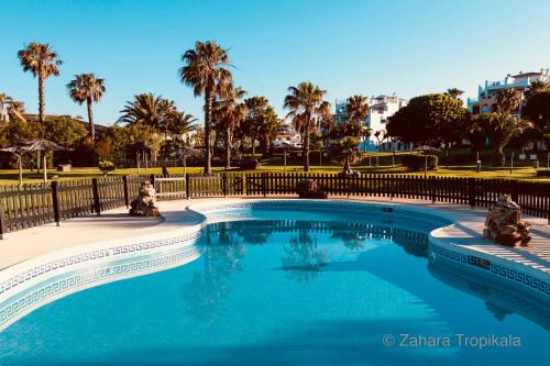 Zahara Tropikala is situated in Zahara de los Atunes, 400 metres from Atlanterra Beach, 43 km from Benalup Golf & Country Club, and 47 km from Club de Golf Campano. This beachfront property offers access to free WiFi and free private parking. The apartment features a pool with a view with a fence, as well as a public bath and a lift.