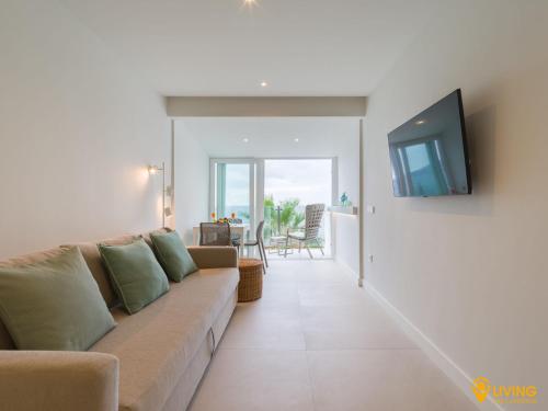 The apartment with a balcony and sea views features 1 bedroom, a living room, a flat-screen TV, an equipped kitchen with a dishwasher and a microwave, and 1 bathroom with a walk-in shower. Towels and bed linen are featured in the apartment. Additional in-room amenities include fruits.