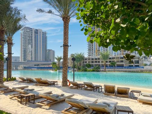 Located in the Dubai Creek district of Dubai, Guest Favorite - Premium & Modern 2BR Stay at Dubai Creek Harbour features accommodation with a private pool and a lift. This property offers access to a balcony, free private parking and free WiFi. The property is non-smoking and is situated 11 km from The Dubai Fountain.
