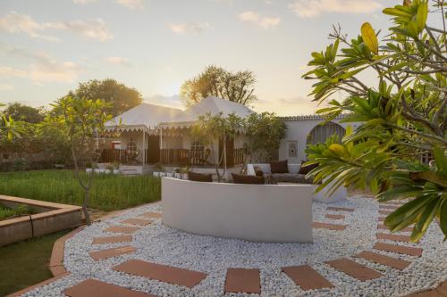 Offering a garden and garden view, SaffronStays Raj Reverie Maharaja Tent Suites is located in Jaipur, 26 km from Govind Dev Ji Temple and 28 km from Birla Mandir Temple, Jaipur. This property offers access to a balcony, free private parking and free WiFi. The property is non-smoking and is situated 24 km from Jaipur Railway Station.
