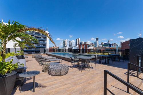 Situated in João Pessoa, Way Tambaú #G5 - Suíte em Tambaú por Carpediem provides accommodation with an outdoor pool and a shared lounge. Both free WiFi and parking on-site are accessible at the apartment free of charge. The accommodation features a 24-hour front desk and a lift for guests.