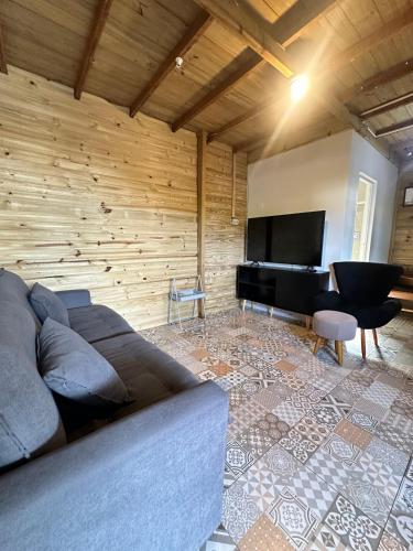 The holiday home features 2 bedrooms, a living room with a flat-screen TV, an equipped kitchen, and 1 bathroom with a hot tub.