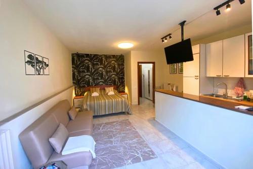 The apartment with a balcony and garden views has 1 bedroom, a living room, a flat-screen TV, an equipped kitchen with an oven and a fridge, and 1 bathroom with a bidet. Towels and bed linen are offered in the apartment.