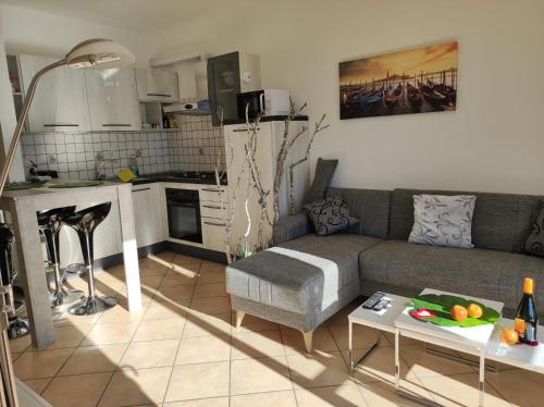 The apartment with a terrace and mountain views features 1 bedroom, a living room, a flat-screen TV, an equipped kitchenette with a microwave and a toaster, and 1 bathroom with a bidet. Guests can take in the views of the lake from the balcony, which also has outdoor furniture. For added privacy, the accommodation features a private entrance.