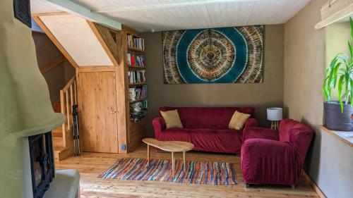 The holiday home with a terrace and garden views has 2 bedrooms, a living room, a flat-screen TV, an equipped kitchenette with a toaster and a fridge, and 1 bathroom with a shower. Towels and bed linen are available in the holiday home. The accommodation offers a fireplace.