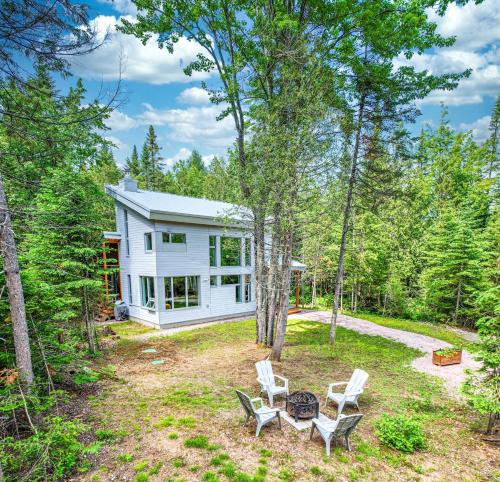 Offering lake views, Villa et spa - Le coeur de la plage - Charlevoix! is an accommodation situated in Saint-Irénée, 11 km from Park les Sources Joyeuses de la Malbaie and 13 km from Charlevoix Museum. Located on the beachfront, this property has a private beach area and a garden. There is a sun terrace and guests can make use of free WiFi, free private parking and an electric vehicle charging station.