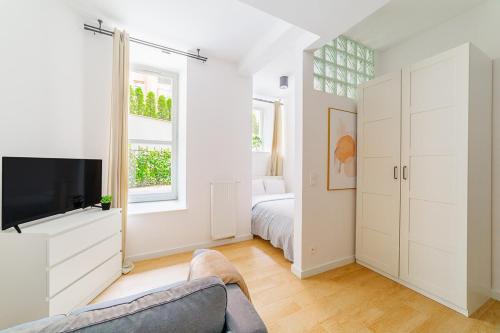 The apartment with a balcony and inner courtyard views has 1 bedroom, a living room, a flat-screen TV, an equipped kitchenette with a dishwasher and an oven, and 1 bathroom with a walk-in shower. Towels and bed linen are available in the apartment. The property has an outdoor dining area.