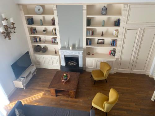 The spacious apartment with a balcony and quiet street views features 2 bedrooms, a living room, a flat-screen TV, an equipped kitchen with a dishwasher and an oven, and 2 bathrooms with a bidet. Featuring air conditioning, this unit has a dressing room and a fireplace.