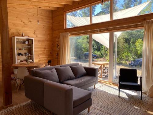 Located in Pucón, Refugio Climático para 2 personas, campo buena vista, El cerduo, Pucón provides accommodation with a private pool, a patio and garden views. This property offers access to a balcony, free private parking and free WiFi. Ojos del Caburgua Waterfall is 16 km away and Ski Pucon is 24 km from the chalet.