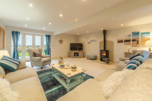The holiday home comes with 3 bedrooms, a fully equipped kitchen with a dishwasher and a microwave, and 2 bathrooms with a bath, a hair dryer and a washing machine. Towels and bed linen are featured in the holiday home. The accommodation offers a fireplace.