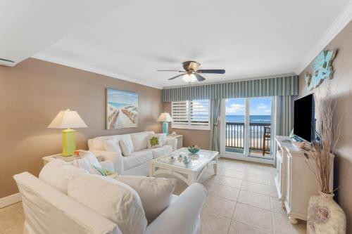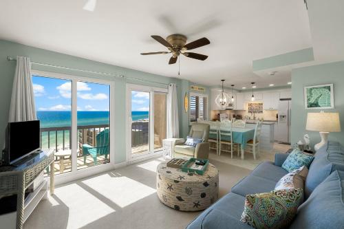 Situated in Panama City Beach, Sandy Bottoms PPC3 - 401! Gulf Front Views! offers a terrace with sea and lake views, as well as a year-round outdoor pool, sauna and fitness room. This beachfront property offers access to a balcony, tennis at the tennis court, and free WiFi. The property is non-smoking and is set a few steps from Carillon Beach.