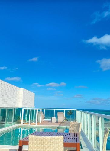 Set in João Pessoa, Apartamento a 100 M da praia offers accommodation with a pool with a view and sea views. This beachfront property offers access to a terrace, free private parking and free WiFi. The accommodation provides a 24-hour front desk and a lift for guests.