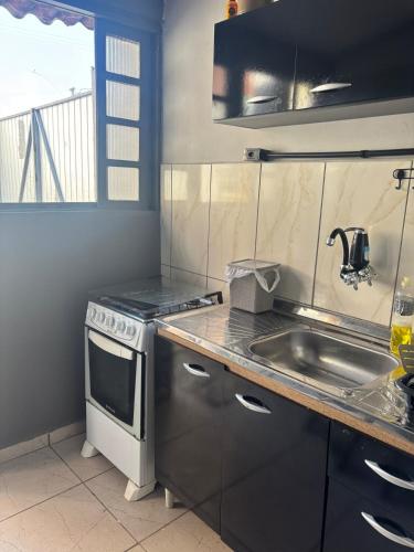 Kitnet duas quadras da praia para três pessoas is located in Matinhos. Free WiFi is available throughout the property and Gruta das Encantadas is 29 km away.