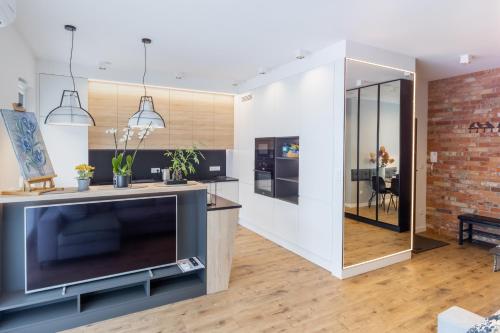 Loft Apartment with Parking in Warsaw by Noclegi Renters is located in the Bielany district of Warsaw, 7.5 km from Jewish Ghetto Memorial, 7.8 km from Museum of the History of Polish Jews and 8 km from Warsaw Uprising Monument. This property offers access to a balcony, free private parking and free WiFi. The accommodation provides a 24-hour front desk and a lift for guests.