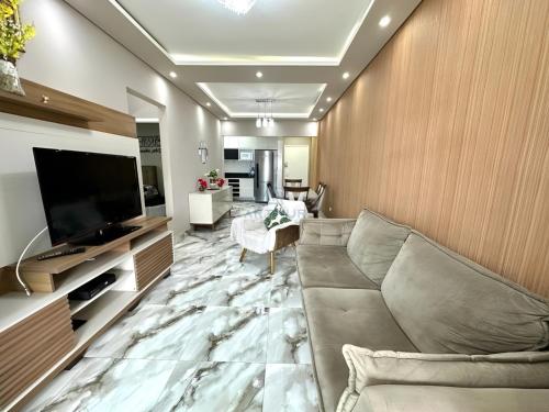 Apartamento Novo na Praia da Guilhermina com Ar Condicionado, Estacionamento Gratuito e WiFi, a property with a terrace, is set in Praia Grande, 14 km from Miramar Shopping, 16 km from Santos Bus Station, as well as 45 km from Itanhaem Bus Station. The air-conditioned accommodation is 3.6 km from Litoral Plaza Shopping, and guests can benefit from on-site private parking and complimentary WiFi. The property is non-smoking and is located 8.3 km from Brisamar Shopping.