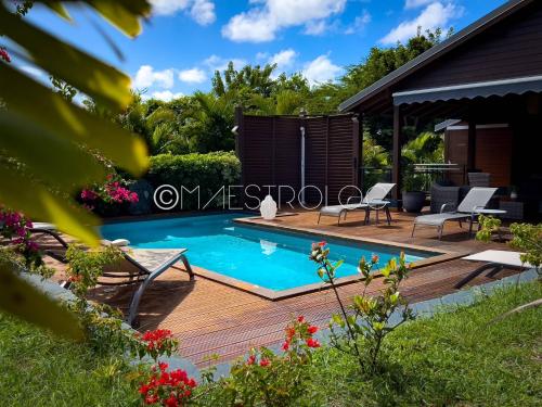 Featuring a garden, private pool and garden views, PROMO! Villa bois & Prestige 3CH à 5 min de la plage des raisins clairs is located in Saint-François. This property offers access to a balcony, free private parking and free WiFi. The property is non-smoking and is set 600 metres from Raisins Clairs Beach.