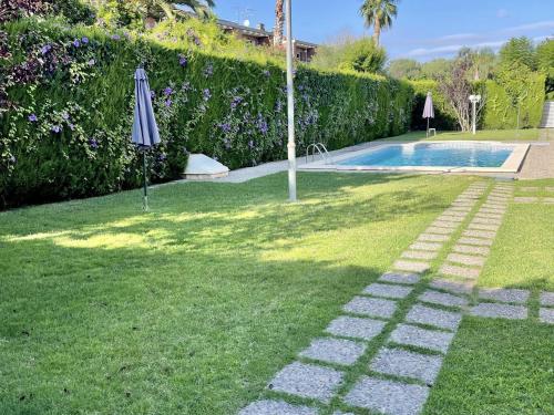 The apartment with a terrace and pool views has 2 bedrooms, a living room, a flat-screen TV, an equipped kitchen with an oven and a microwave, and 1 bathroom with a bidet. Towels and bed linen are available in the apartment. The property offers garden views.