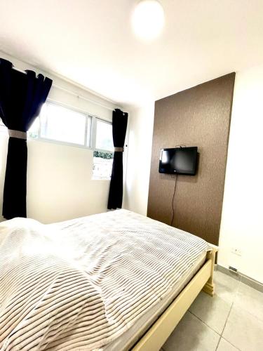 The apartment is composed of 1 bedroom, a fully equipped kitchenette, and 1 bathroom. A flat-screen TV is available.