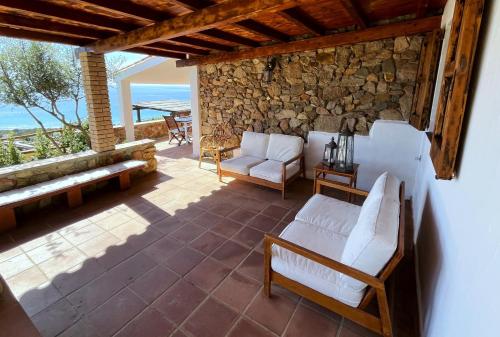 The villa with a terrace and sea views features 3 bedrooms, a living room, a flat-screen TV, an equipped kitchenette with a microwave and a toaster, and 2 bathrooms with a bidet. Guests can enjoy a meal on an outdoor dining area while overlooking the mountain views. For added privacy, the accommodation features a private entrance.