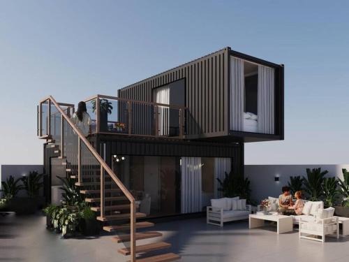 Situated in Riyadh, 12 km from Riyadh Park and 14 km from Riyadh Gallery Mall, Serene AlMalqa Loft A Boutique Rooftop Container Residence features spacious air-conditioned accommodation with a terrace and free WiFi. This property offers access to a balcony and free private parking. The accommodation provides a lift and full-day security for guests.