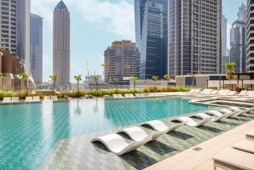 High Rise Premium 2BR apt, PS5, Burj Khalifa view. Is set in the Business Bay district of Dubai, 2.5 km from Burj Khalifa, 2.6 km from The Dubai Fountain and 3 km from Dubai Mall. Among the facilities at this property are a 24-hour front desk and a lift, along with free WiFi throughout the property. During your stay at this apartment, you can make use of an outdoor swimming pool, as well as a selection of a fitness centre and luggage storage space.