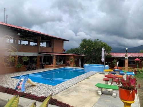 Set in Cali and only 10 km from Pan-American Park, Alojamiento campestre offers accommodation with mountain views, free WiFi and free private parking. With garden views, this accommodation provides a patio. The farm stay features an outdoor fireplace and a 24-hour front desk.